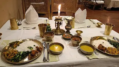 Located at Dillibazar, Bhojan Griha offers dine to experience Nepali cuisine in a 150 year old heritage building which housed the late Royal Priest of the King of Nepal. Bhojan Griha serves the food prepared from local organic sources from their very own farm. Elevate your senses with the folk dance and music of Nepal. They have claimed to work with Chi philosophy to discourage chemical/commercial farming practices and are constantly working with local producers to encourage traditional/organic way of farming. They also offer a wooden ceiling with various designs of deities and traditional Nepali crafts carved on. Bhojan Grihas neo-classical architectural designs were introduced in Nepal by the first Rana Prime Minister of Nepal, Jung Bahadur Rana. Bhojan Griha is one of the best restaurant in Kathmandu valley for authentic Nepalese Cuisines.